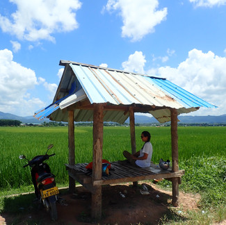 Après une balade dans le village via le pont suspendu (un peu effrayant), une bière dans vrai bar de locaux où tout le monde nous dévisage, un réveil matinal par de la musique et des prières car c'est jour de Buddha, et le triste constat que la caméra a définitivement rendu l'âme, il est temps de nous rendre à Luang Namtha en faisant "escale" à Oudomxay.