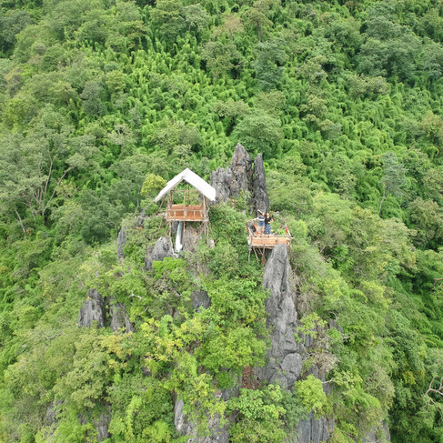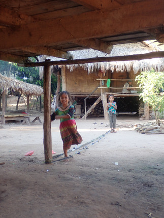 Tous les deux, avec notre guide, nous sillonnons la forêt luxuriante et humide du parc, celui-ci nous fait goûter des fruits et plantes en chemin, et nous préparera un déjeuner cuit dans du bambou, avec des vers à soie en accompagnement... Miam ! Le soir, nous sommes accueillis dans le village de Nalan Neu : une expérience incroyable. On a l'impression de remonter des années en arrière ou d'entrer dans un monde parallèle où ils vivent si différemment de nous : entre les enfants qui jouent dans la rivière où l'on nous a prévenus qu'il y a des pythons, l'adolescent qui boit (ou plutôt mange) la poudre de Nescafé à même le sachet, et ce mode de vie familial où les plus jeunes prennent soin de leurs parents et grands-parents, font du feu ensemble en grignotant un épi de maïs... Certains ont l'air un peu inquiet de nous voir, mais dès qu'Armand sort son drone pour survoler le village, tous les enfants débarquent en courant, surexcités. Notre guide est super sympa et nous raconte des anecdotes croustillantes sur le pays et sur sa propre vie, comme le fait qu'il prenait de la méthamphétamine étant jeune et qu'il a accidentellement tiré dans la tête d'un villageois durant une chasse. Il a eu l'air de tomber des nues quand on l'a informé que le Coca-Cola n'était pas très bon pour la santé.