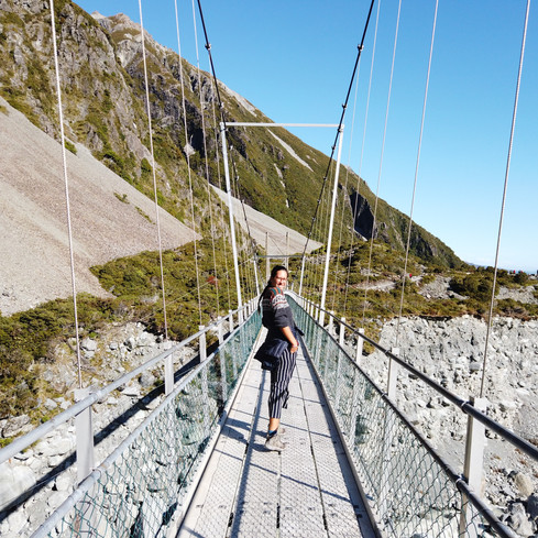 Toujours très aux aguets sur les sites de météos néo-zélandais, nous apercevons une amélioration pour les jours à venir. Nous décidons donc de faire le détour au Arthur Pass National Park et de faire une randonnée. Arrivée la veille sur place dans un mini-camping niché dans d'immenses montagnes sous un énorme orage et une pluie torrentielle, il est difficile de croire que le temps est sensé s'améliorer le lendemain. Réveil programmé à 5h nous nous lançons sur le Bealey Spur Track : quelle bonne idée ! Le soleil est au rendez-vous, même s'il est menacé par quelques nuages lointains encore coincés derrière les montagnes, les paysages sont merveilleux, et nous sommes les premiers et seuls marcheurs sur cette piste ! Nous arrivons finalement devant une petite hutte ouverte où les randonneurs peuvent faire étape, Armand regrette de ne pas avoir pris les sacs de couchage et l'équipement pour passer la nuit ici, Lauriane regrette un peu moins quand elle voit les hamacs remplis d'eau de pluie et qu'elle lit les commentaires dans le "livre d'or" de la hutte et qu'elle compte le nombre de gens qui se plaignent des souris.