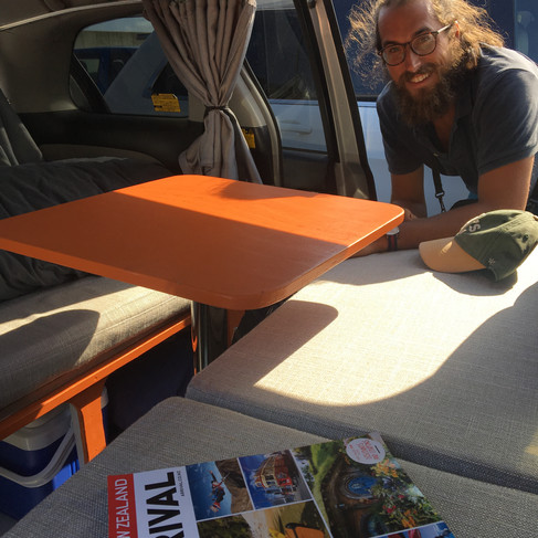 Nous voici ensuite au lac de Wanaka : un charmant lac entouré d'une petite ville qui nous rappelle un peu Annecy. Armand profite du skate park dans un cadre plutôt agréable. Après une courte nuit dans la "Glendhu Bay", nous partons pour une randonnée de 4h, le Fern Burn Track, qui mène à une petite hutte ouverte aux randonneurs et où l'on compte passer la nuit. Casseroles, pâtes, sacs de couchage, bouteille de vin, une fois tout empaqueté sur le dos, c'est parti! Nous traversons d'abord un pré avec des moutons, puis nous avons une phase de forêt assez sauvage où le chemin n'est pas évident. Enfin, nous sillonnons les collines jusqu'à la hutte. Ça monte, ça descend, ça monte, ça descend... pas évident ! Au moment d'arriver à la hutte, nous rencontrons trois américaines qui quittent justement les lieux. A nous la cabane ! Une allemande nous rejoindra quelques heures plus tard, nous savourons une petite bière au soleil pour nous féliciter et dormirons avec le bruit des opossums courant sur le toit.