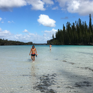 Dernière partie du programme avec les parents : l'Île des Pins ! Deux jours sur l'île qui se vante d'être la plus proche du paradis. Et on veut bien le croire avec ce sable blanc et cette eau transparente ! Farniente, snorkeling, Piscine Naturelle de la Baie d'Oro et tour de pirogue à balancier dans la Baie d'Upi avec Daniel le piroguier et... avec un dauphin qui nous suit. Nous en prenons plein les yeux (et plein le ventre, notamment de langoustes) pendant ce séjour.